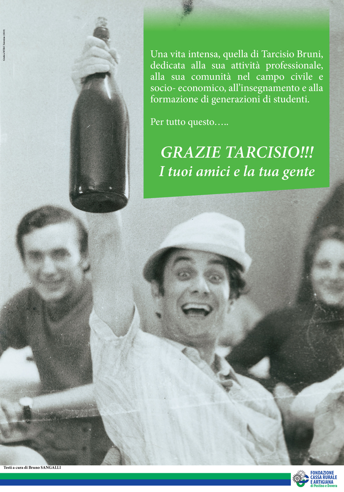 Una vita intensa, quella di Tarcisio Bruni, dedicata alla sua attività professionale, alla sua comunità nel campo civile e socio-economico, all'insegnamento e alla formazione di generazioni di studenti.